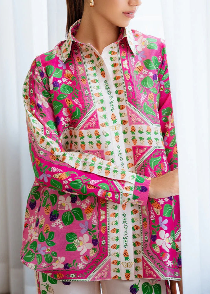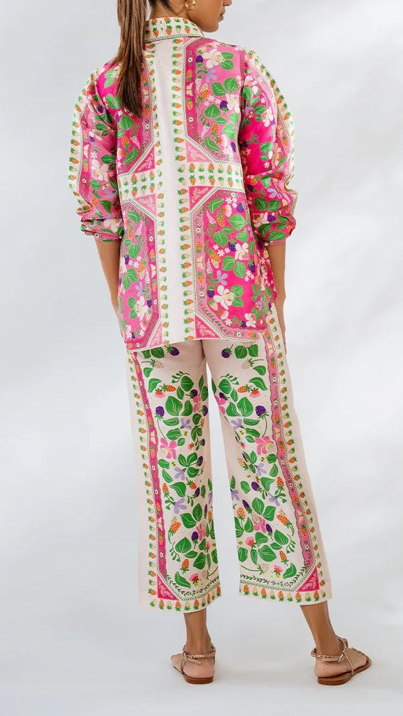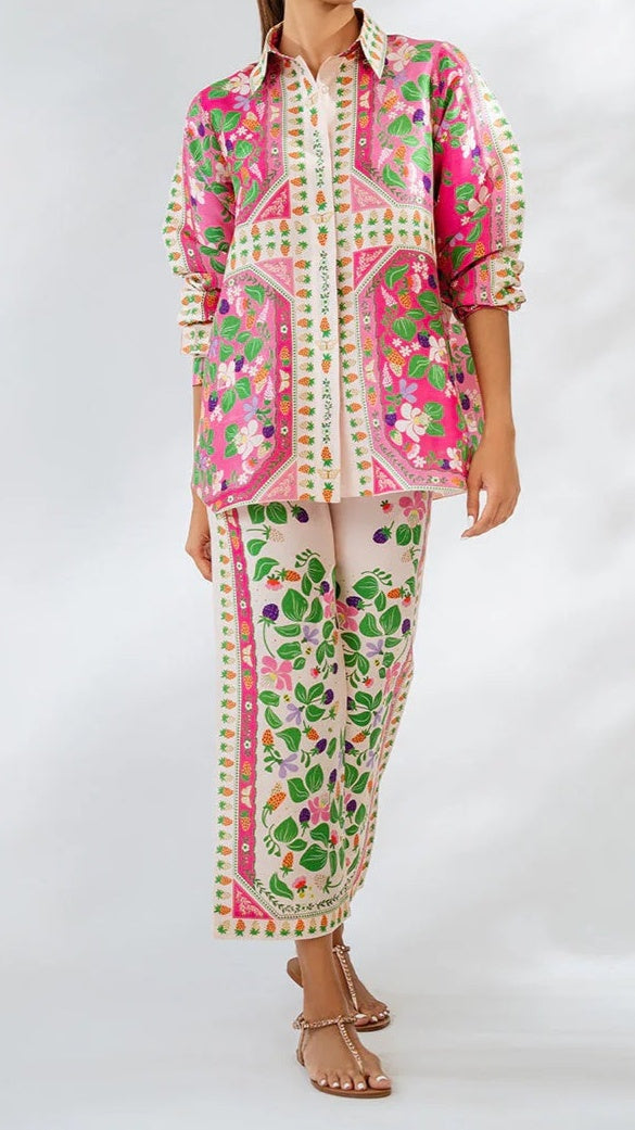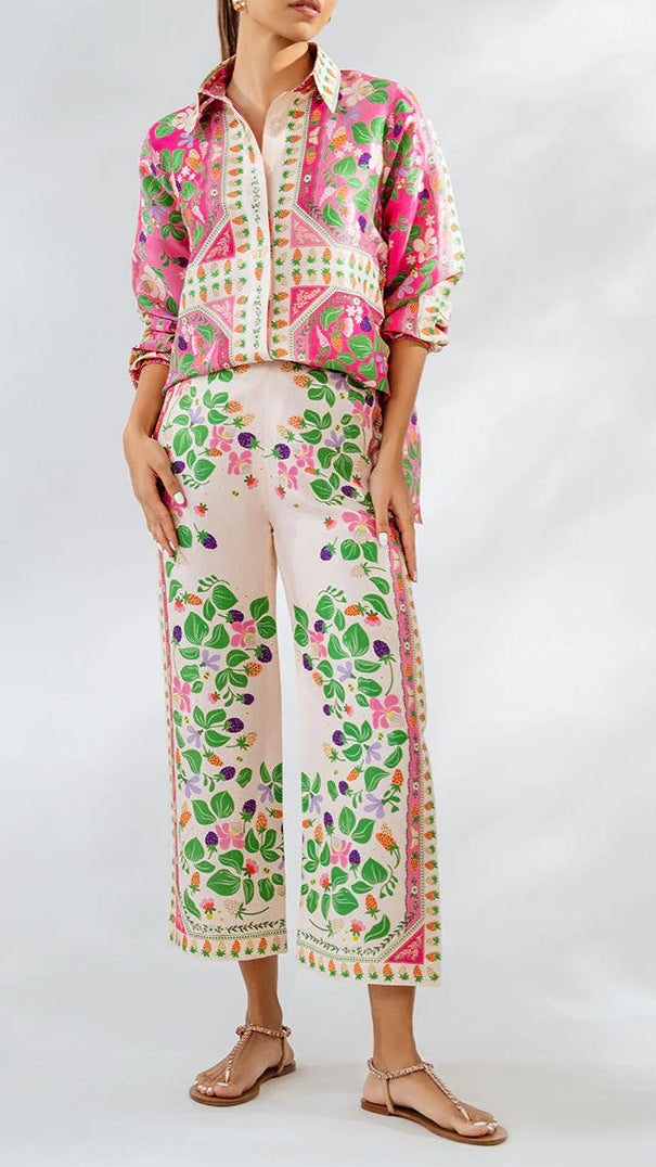 o Vibrant floral and leaf pattern harmonizing with the top for a coordinated ensemble.